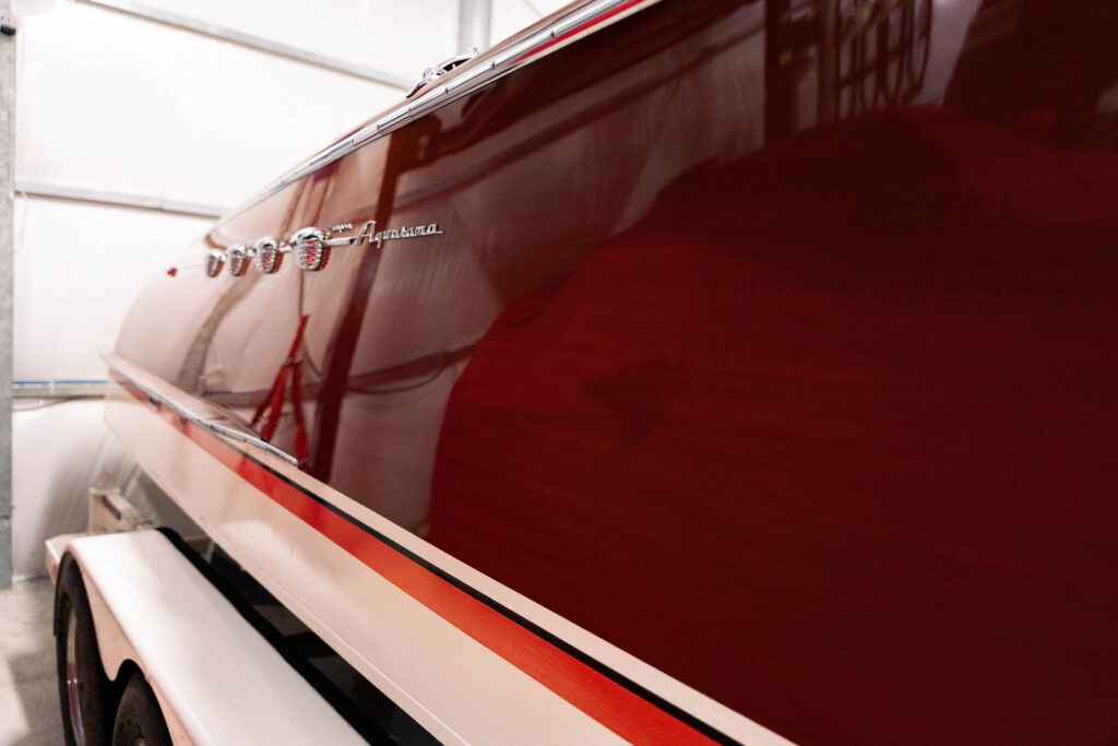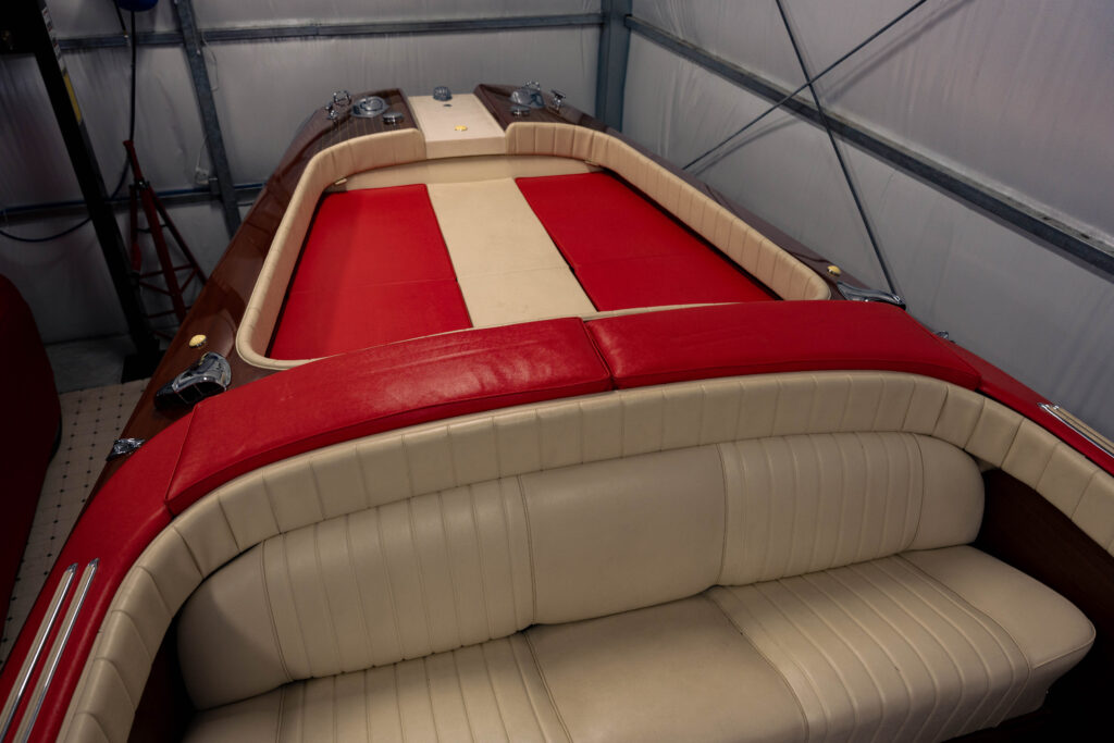 Riva boats were favored by the European elite of the era, including many notable movie stars, industrialists, and heads of state. Company founder, Carlo Riva, named this model after watching an American movie at the theatre which was filmed in “Cinerama”. The name translated into every language and he felt that it captured the essence of this model. This 1969 Aquarama is one of only 27 Super Aquarama models built in this year. Only 203 of these boats were ever built throughout the years of production. The