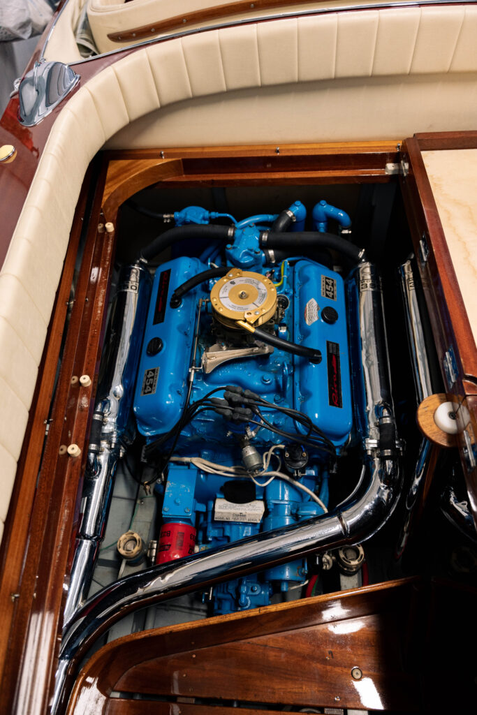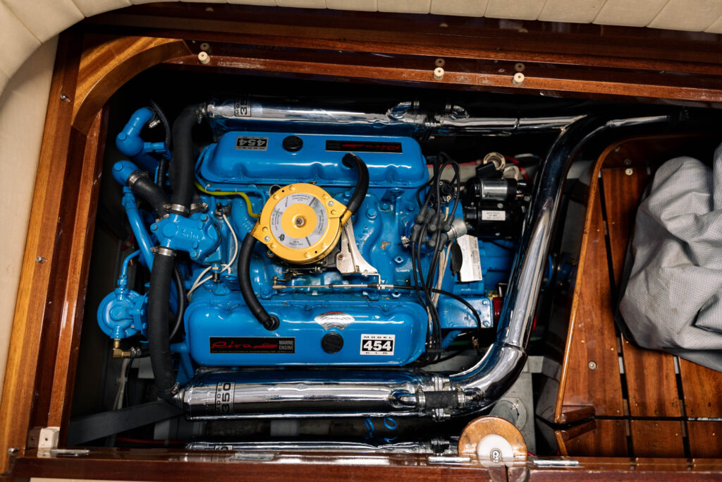 boat is powered with twin 454cid engines which provide very suitable power. It is believed that fewer than 50 of these boats reside in North America. This boat has been comprehensively restored to a very high standard. The overall finish, brightwork, interior, chrome, and gauges are in Bristol condition. The twin engines are clean, well presented, and match the overall condition of the rest of the boat. A restoration of this quality, with originality in mind, is indicative of pride of ownership. Additional detailed photos and inspection reports available.